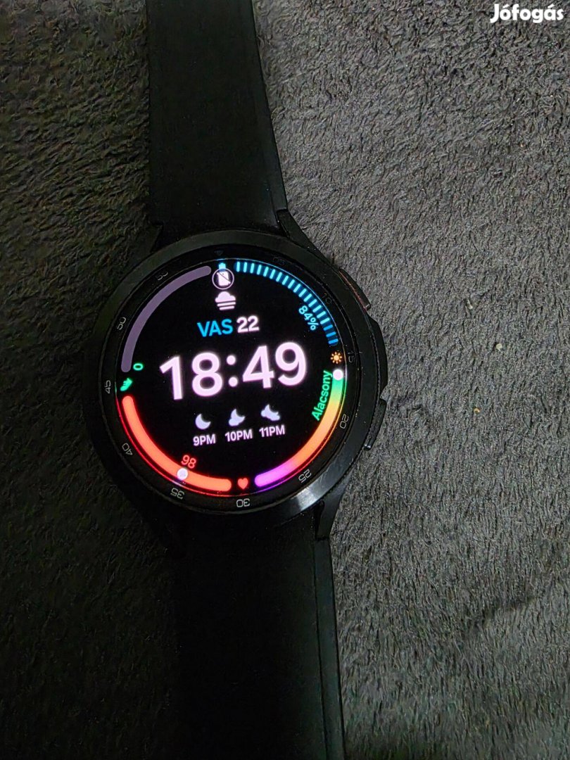 Samsung Galaxy Watch 4 Classic okosóra töltővel.