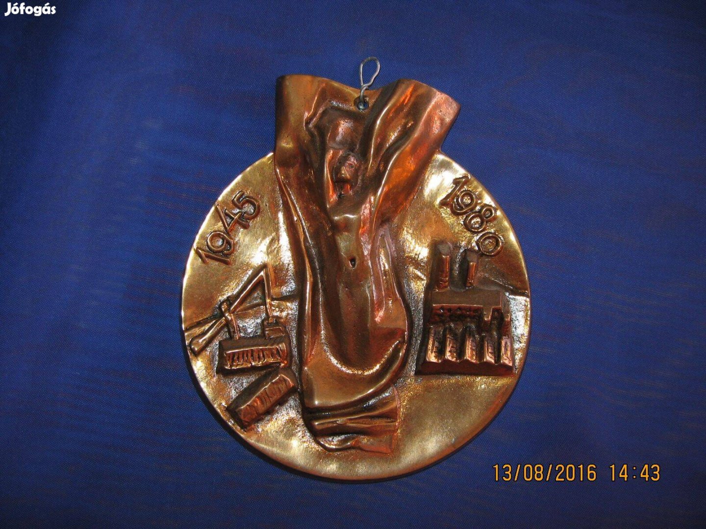 Az eladó tárgy egy domborított, öntött fém emlékplakett/érem, amelyet évfordulóra, a felszabadulás alkalmából adtak ki, 1945, - 1980 35. évfordulója alkalmából.