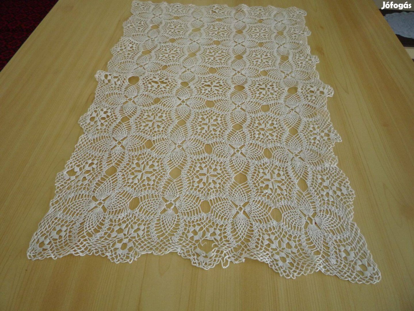 Szögletes ekrü, kézi horgolású terítő 40x70 cm