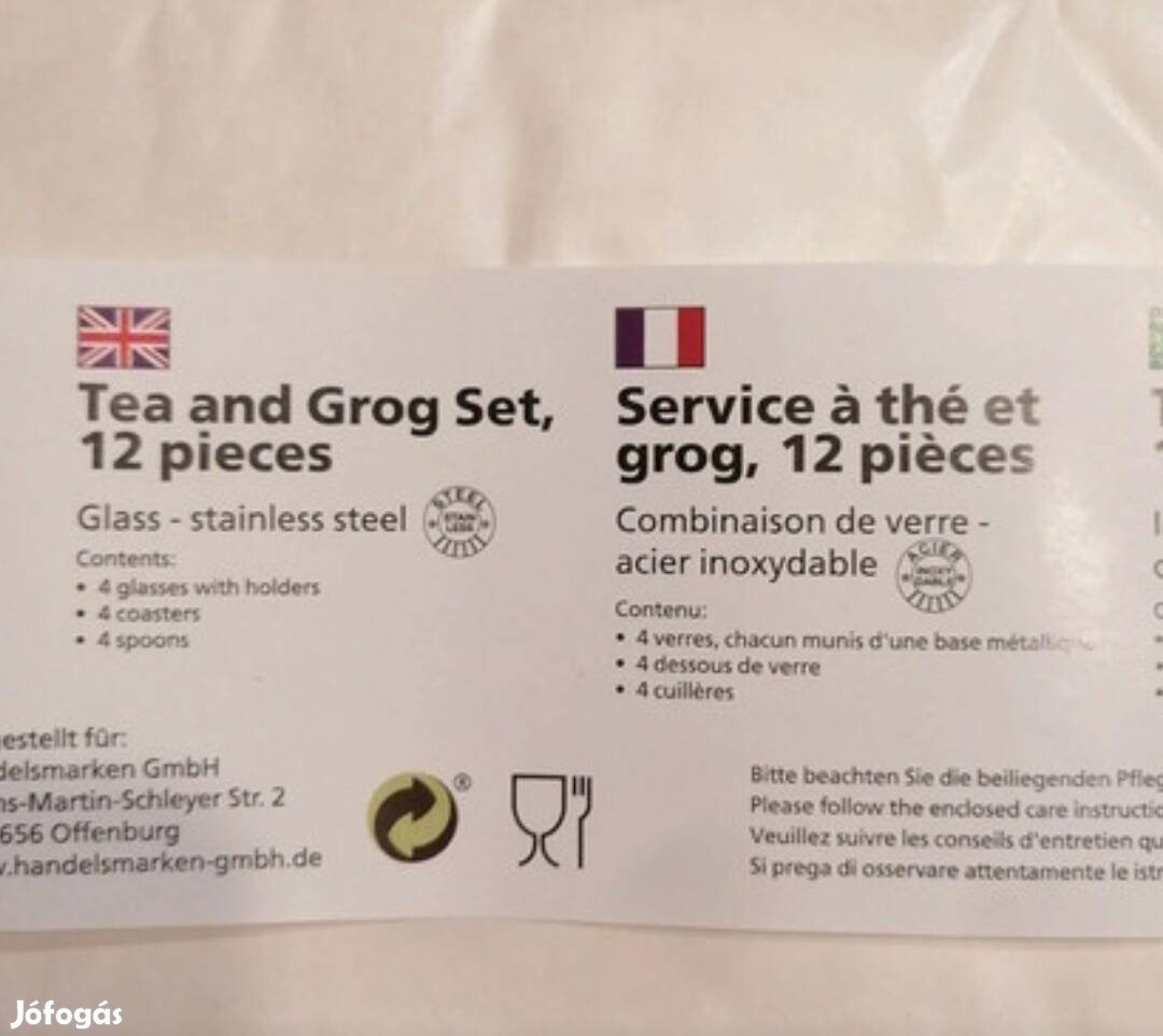 Anyaga fém és üveg, 4 db bögre, 4 db keverőkanál, 4 db alátét.