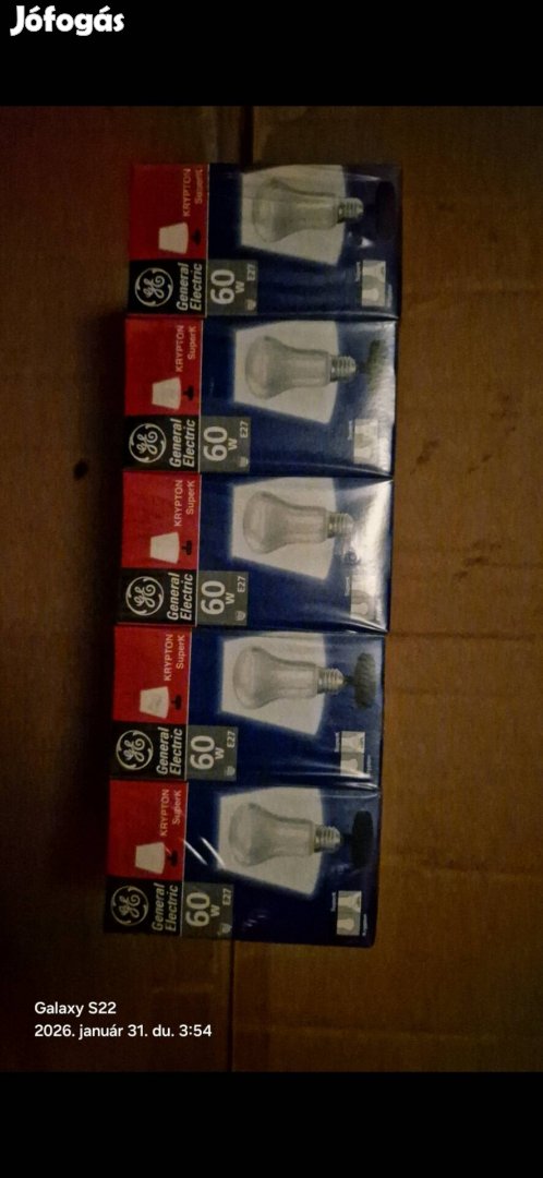 Eladó a fotón látható 10 darab 1 karton bontatlan Tungsram G.E. Superbalux 60 Wattos ízzó, égő Kryptongázzal töltött.