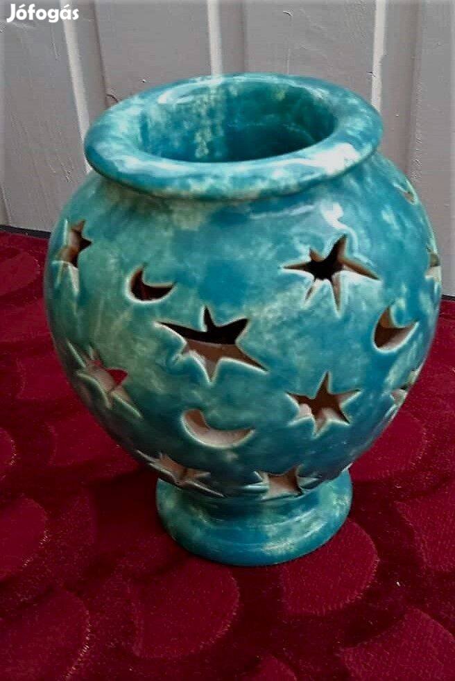 Áttört csillag, hold mintázat a testen. Érdekes foltos mázas. Mutatós darab.