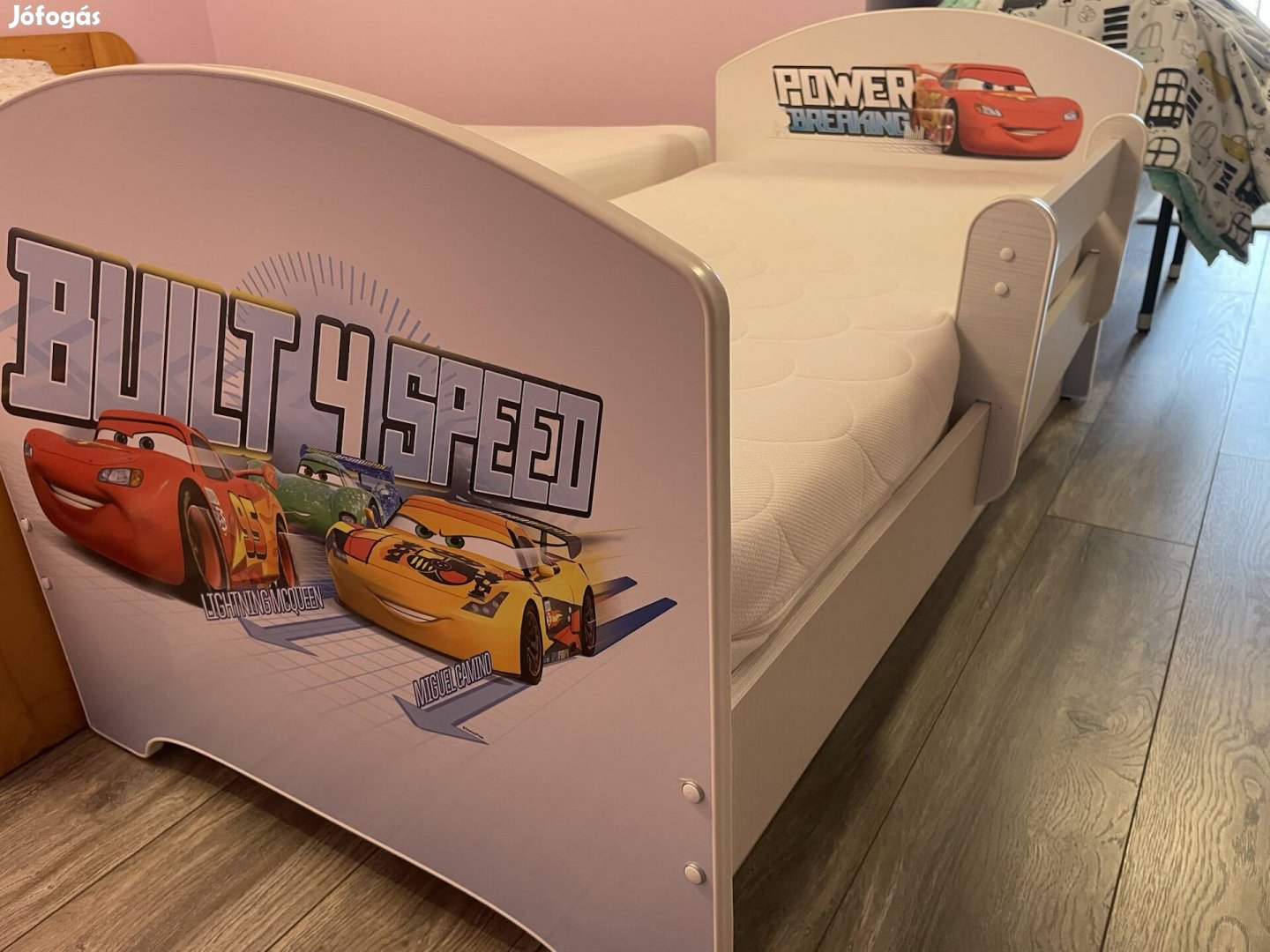 Keveset használt, újszerű gyerek ágy eladó. Minőségi szivacs matraccal és ágyneműtartóval. Verdás matricákkal.