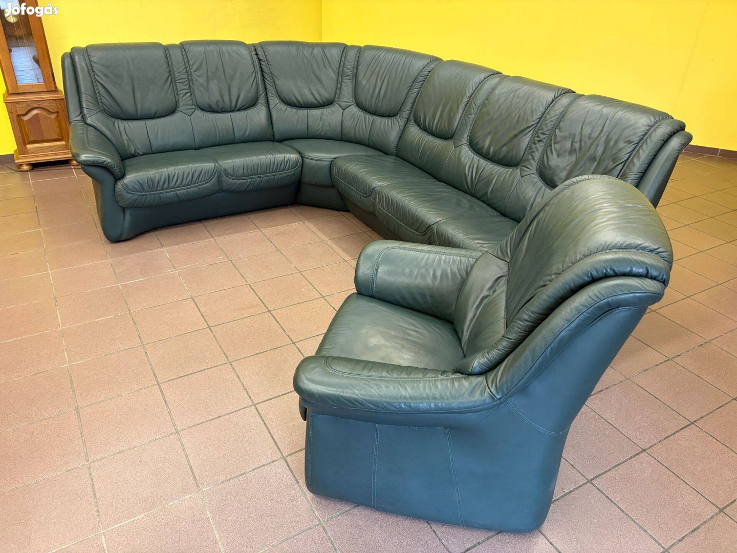 Valódi marhabőr sarokülőgarnitúra + fotel, újszerű állapot, zöld szín