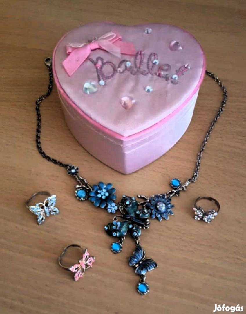 Vintázs, ékszerszett ékszerdobozzal, gyönyörű pillangós