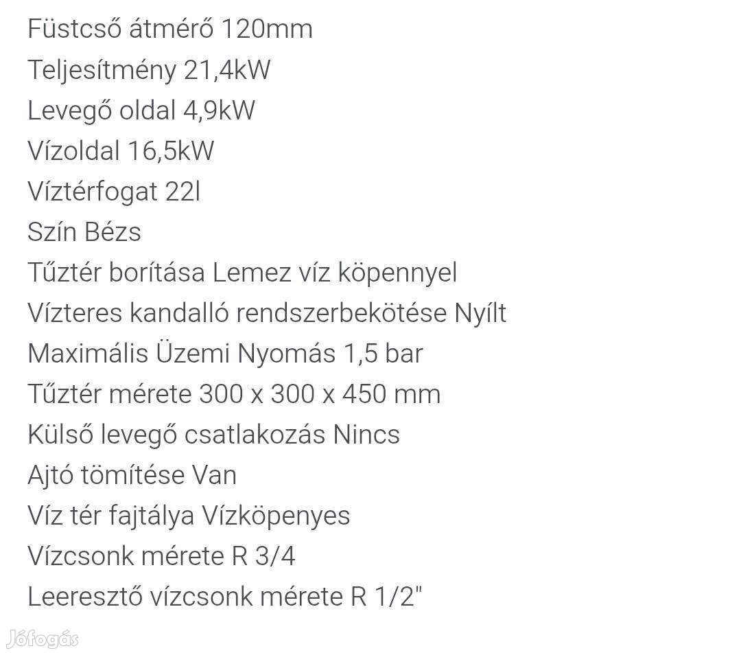 Teljesítmény: 21 kW képes egy egész családi ház radiátoros központi fűtési rendszerét kiszolgálni! Ár: 150 000-Ft, tűzifa csere is érdekel!
