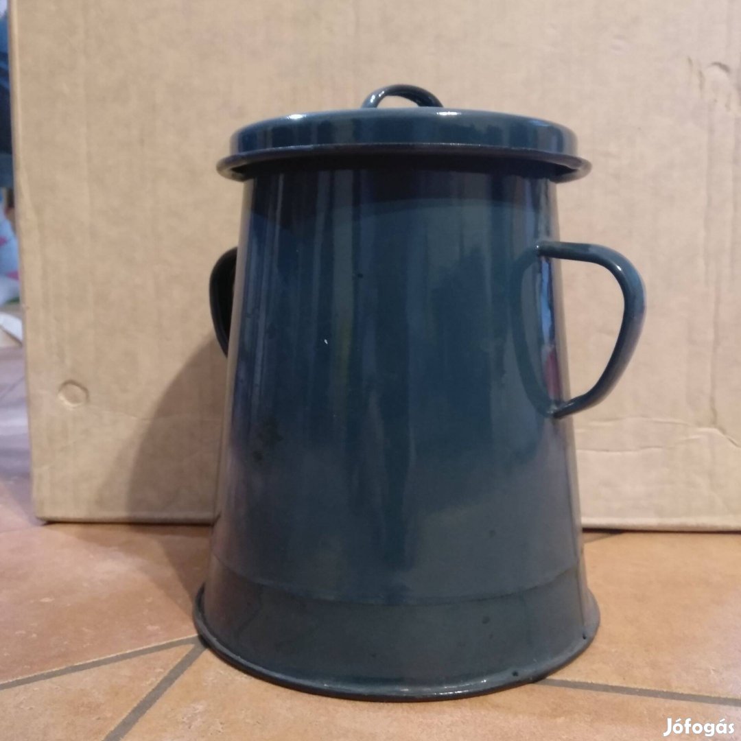 19 cm magassága fedő nélkül, 22 cm magassága fedővel, 12 cm felső átmérője, 14,5 cm alsó átmérője és 19 cm szélessége füllel