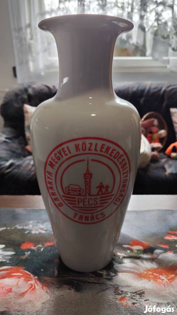 Eladó a képeken látható zsolnay váza, közlekedésbiztonságért I. helyezett felirattal. A képen látható, hogy a felső peremen apró festékhiány van.