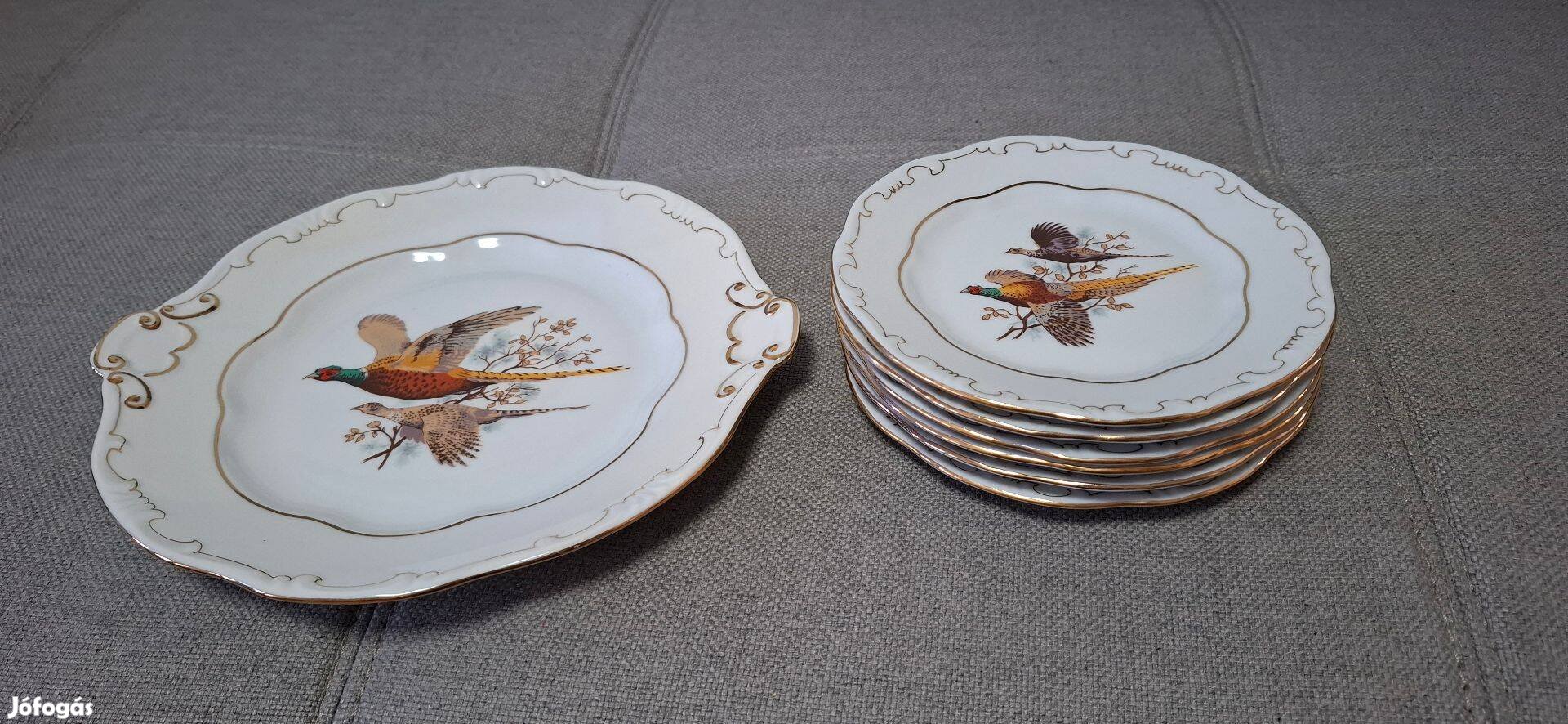 Kifogástalan állapotú Zsolnay süteményes készlet fácán mintás arany szegélyes. Sosem használt eredeti dobozában!