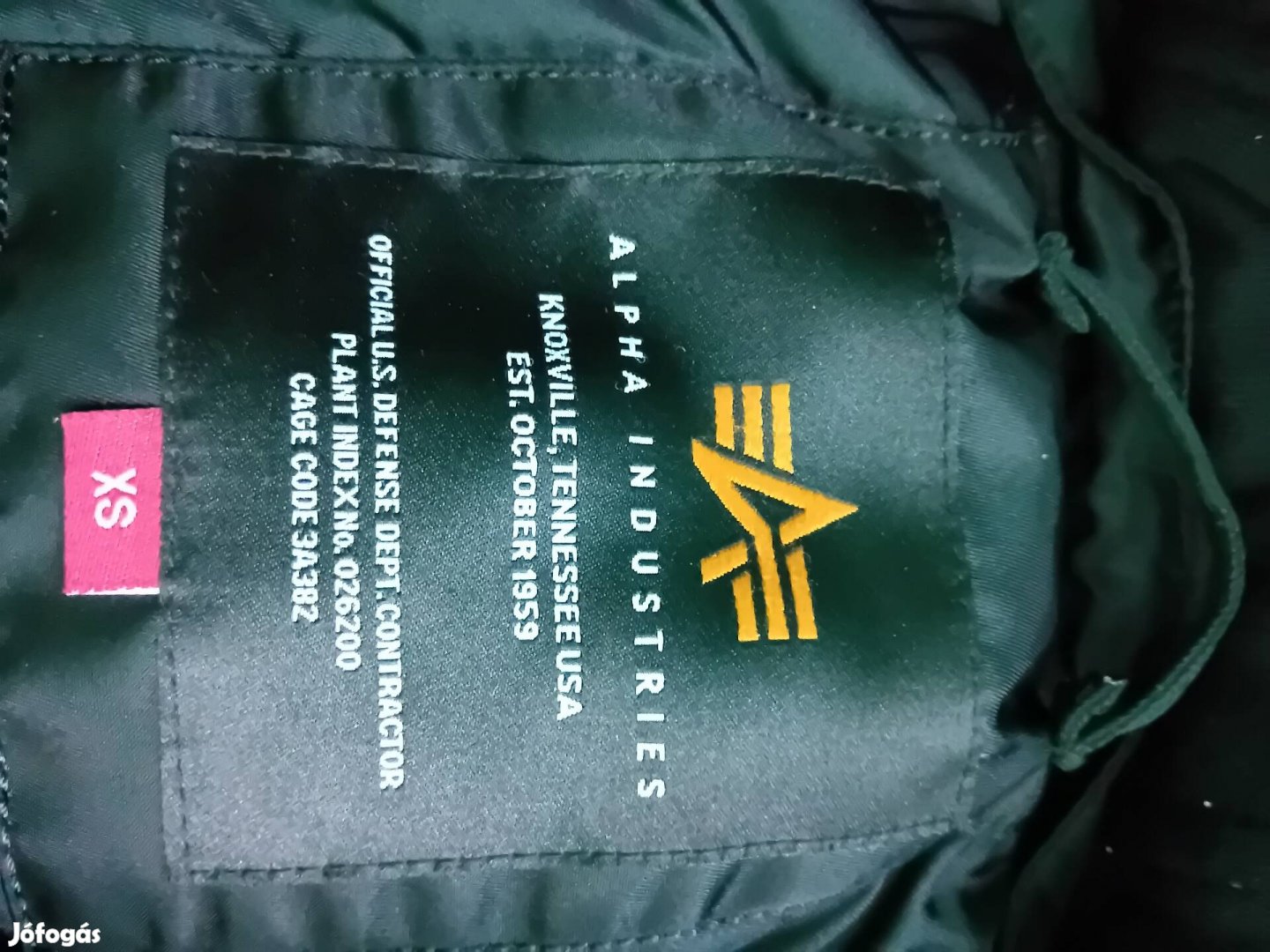 Eladó alpha Industries kabát xs-es méretben alig használt. Kb 2 hónapja vettem ujanonn, minimális kopás van rajta de nem annyira látható utolsó kepeken levan fényképezve. Minimális alkuképes!!!!