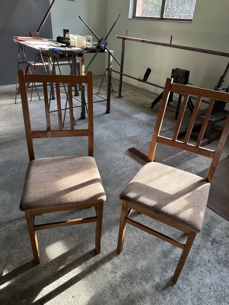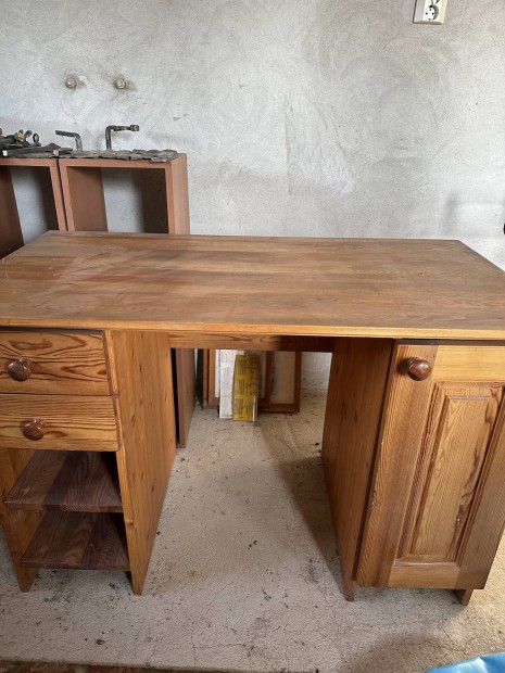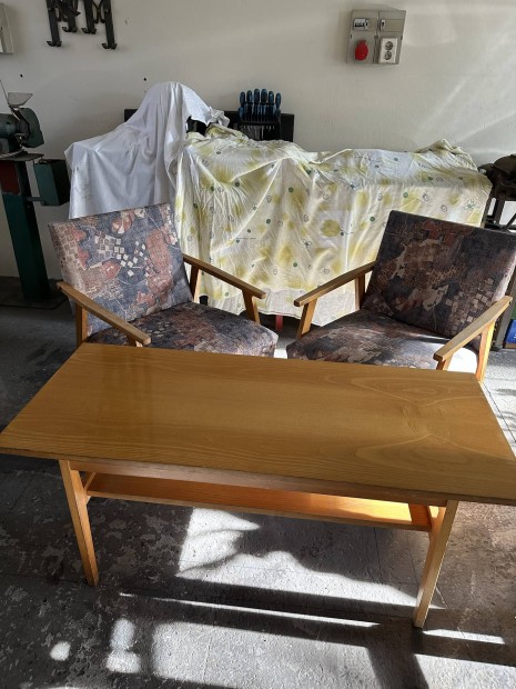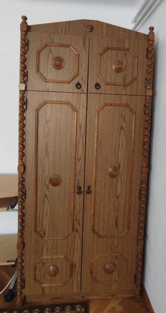 Fa kombinált szekrénysor + székek + asztal + antik bárszekrény