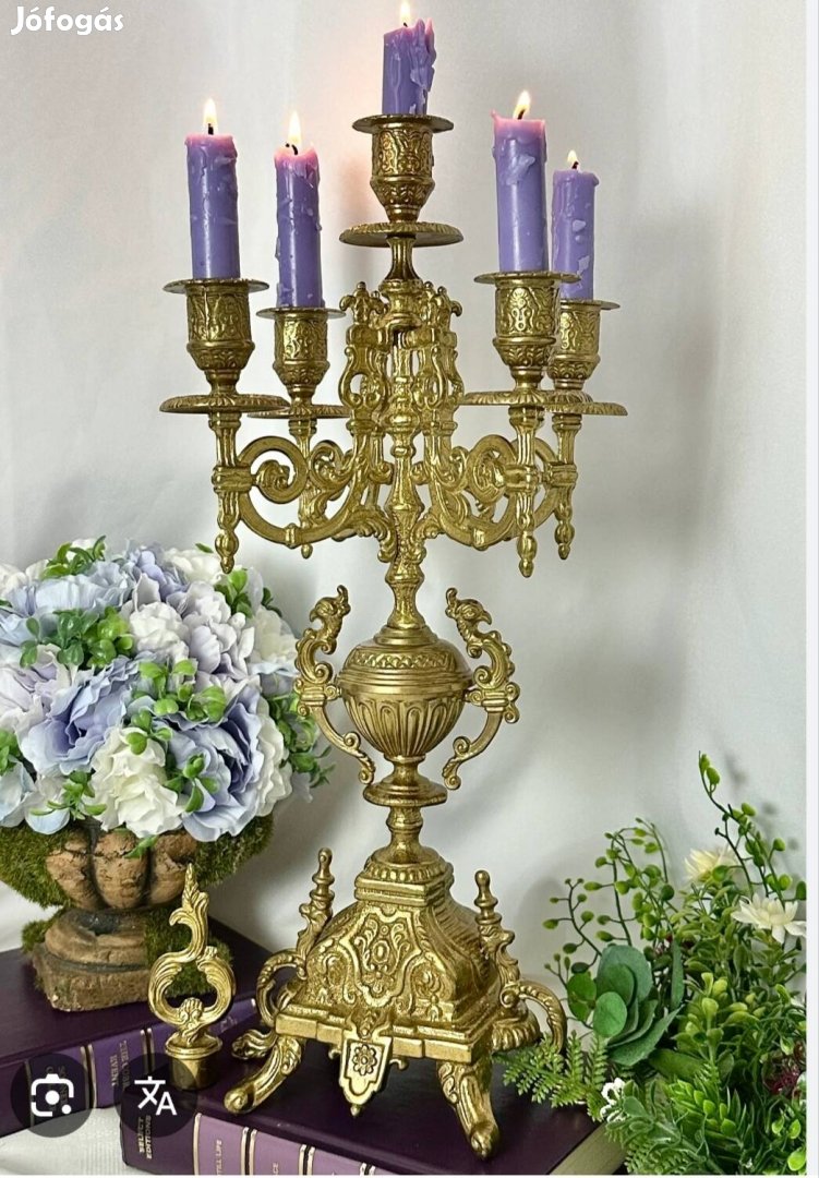 Eladó egy 5 ágú réz gyertyatartó nagyon szép hibátlan állapotban! Interneten utána lehet nézni komoly összegeket kérnek ezért, én csak a töredékét kérem.