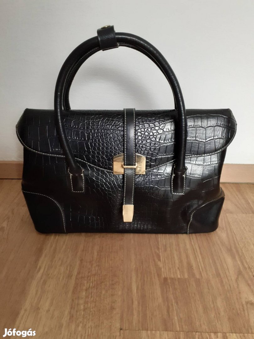 Fekete színű,női kézitáska,műbőr,több belső tárolóval,telefon,2db cipzáros,stb.újszerű állapotban eladó.