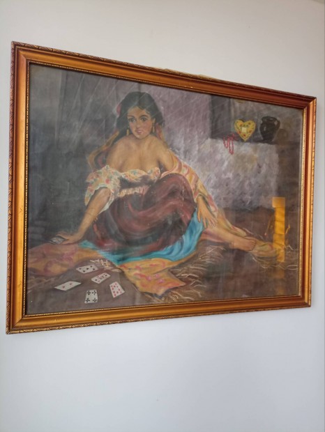 festmény, kártyavető asszony