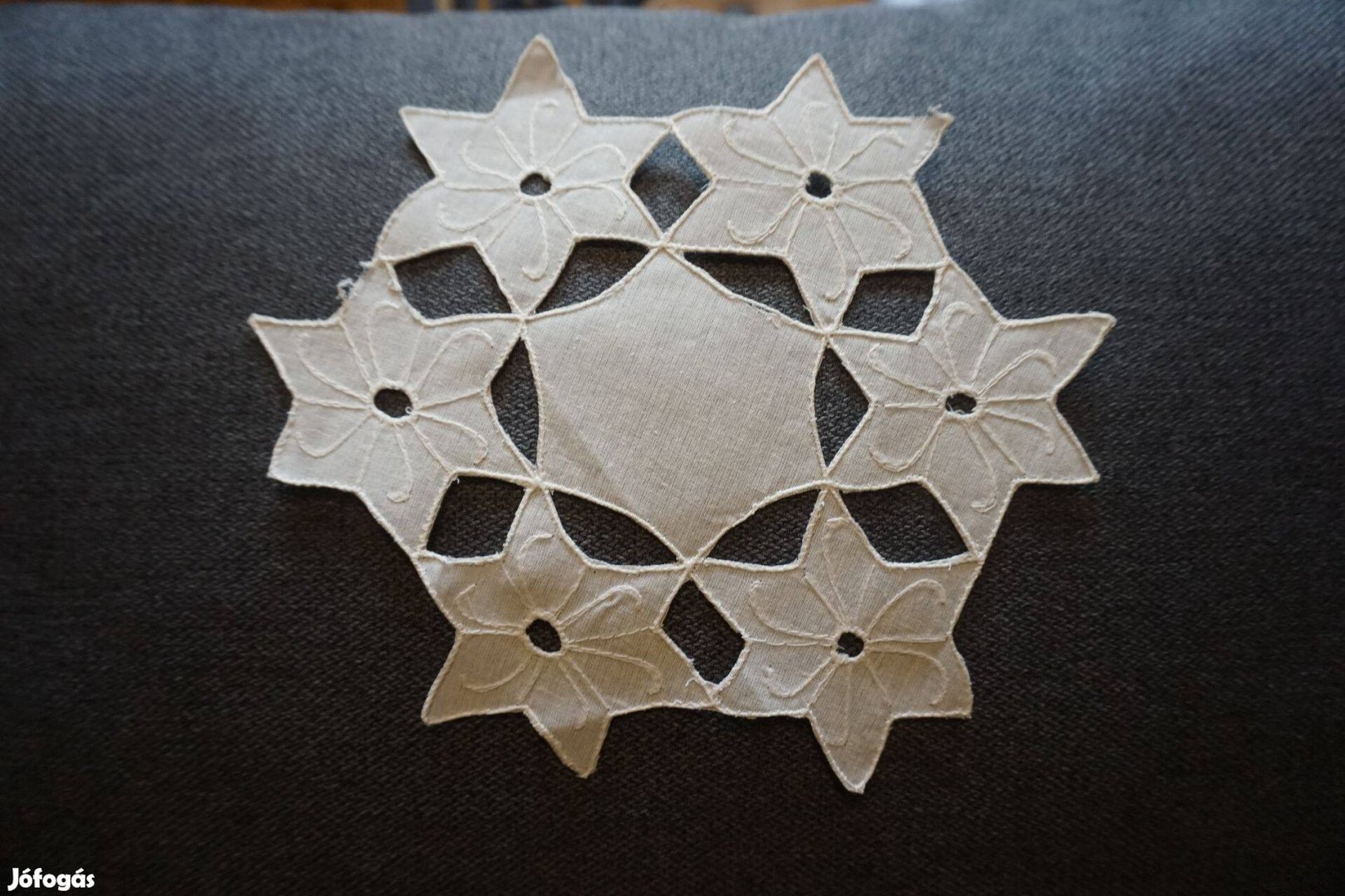 20 cm.-es kerek riselt és hímzett kis alátét terítő eladó