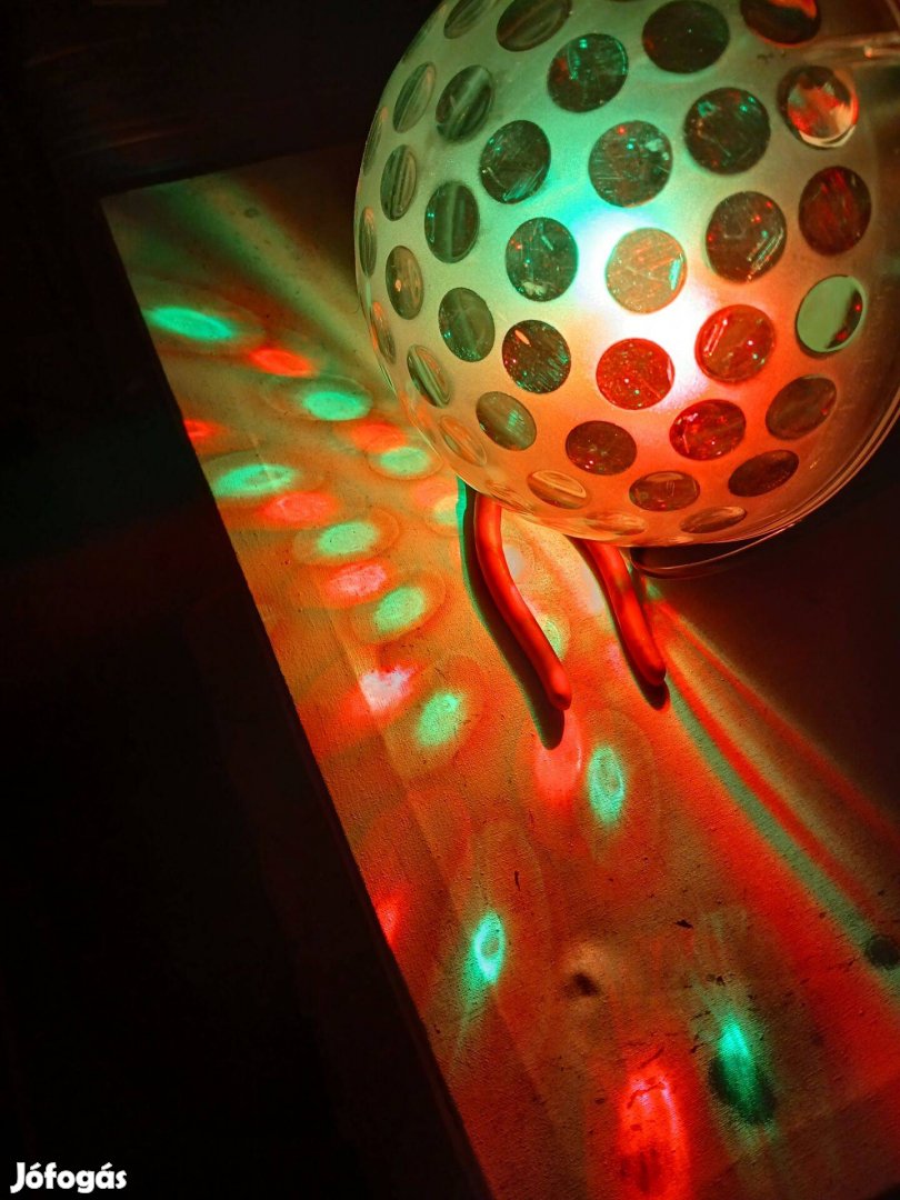 Eladó egy discó 20cm-es gömb amibe 4 szinű forgó ledek vannak.Új saját dobozában van tökéletesen működik 220v-os kapcsolós, függőlegesen falra is szerelhető.Futár is mehet.