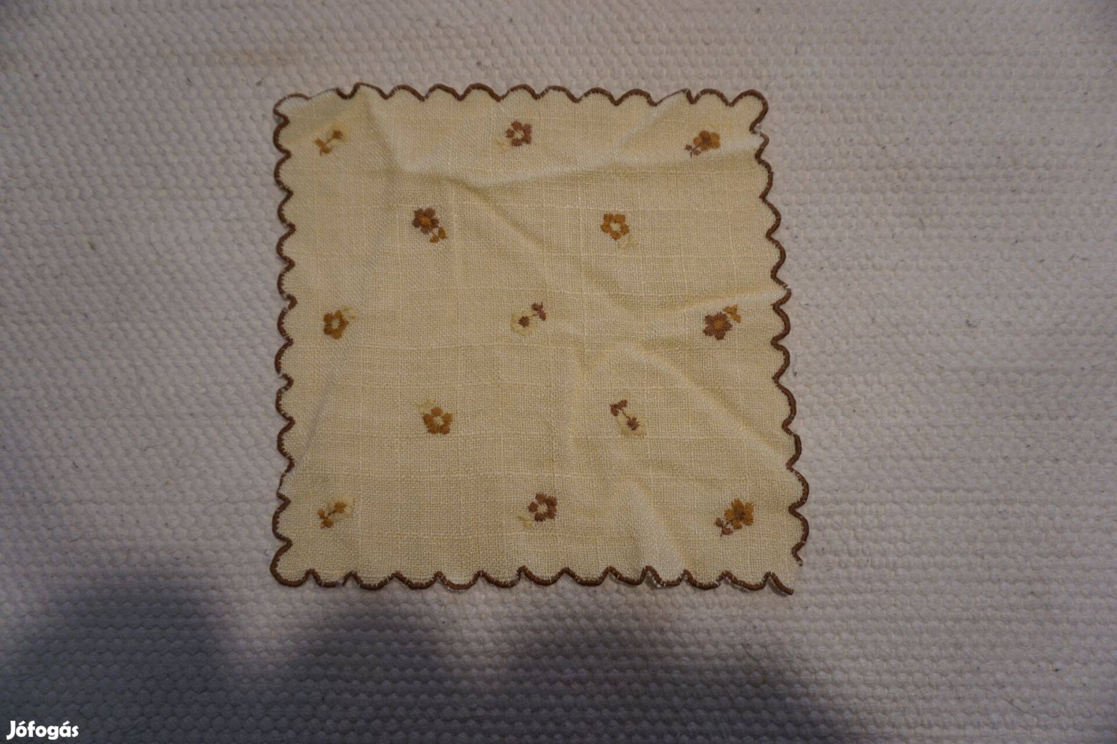 27x27 cm.-es világos sárga hímzett és szegett terítő eladó