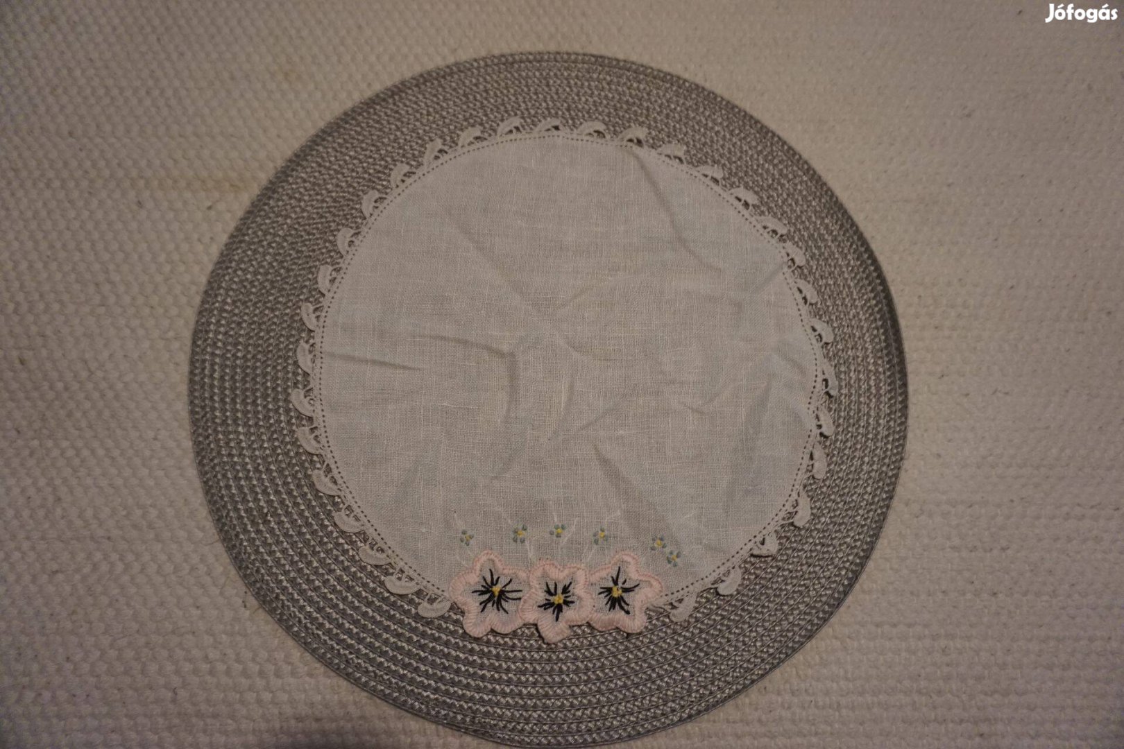 29 cm.-es kerek, díszesen szegett kis alátét terítő eladó