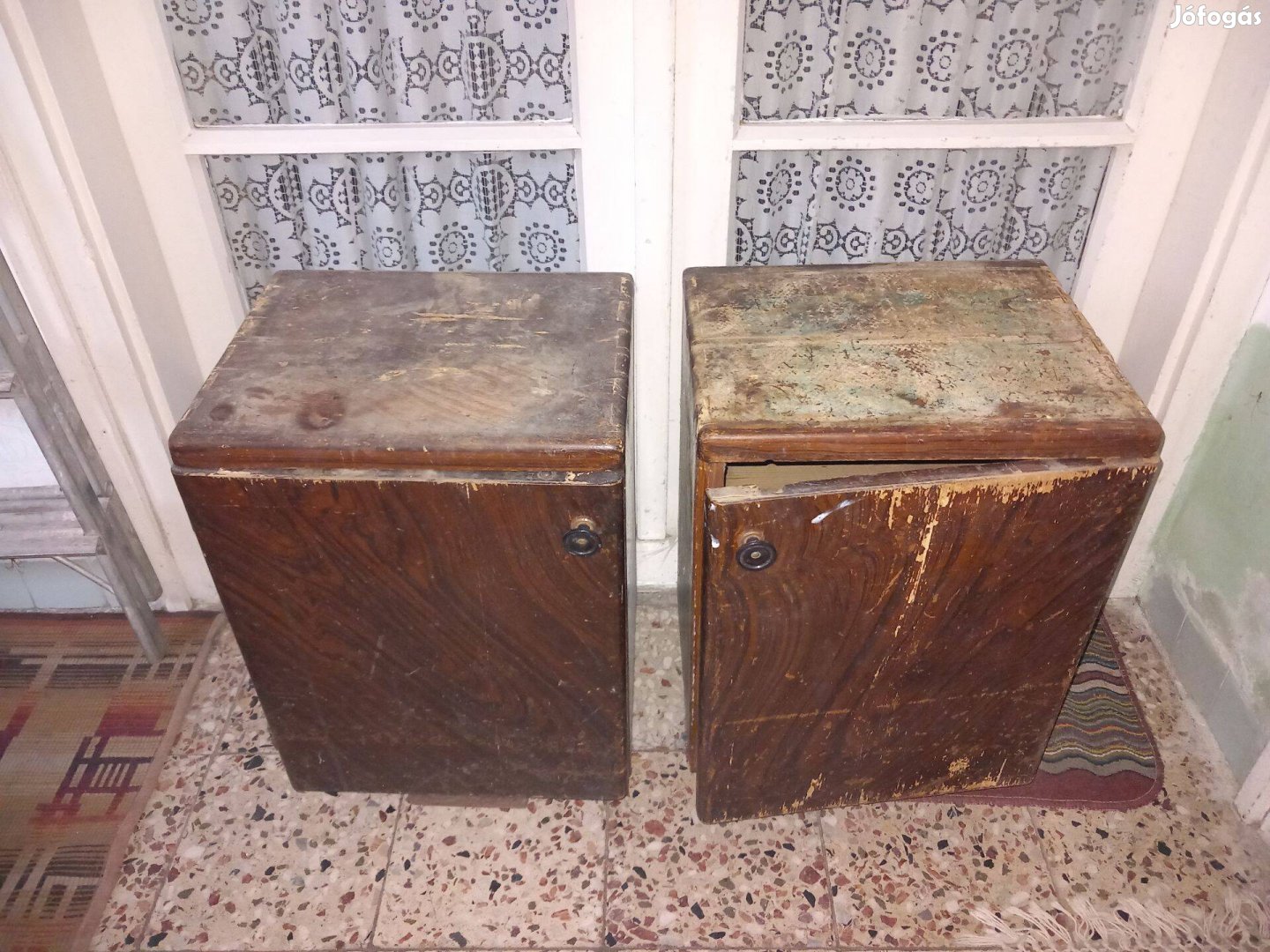 Eladó a képeken látható 2 db régi, retró éjjeli szekrény, felújításra, átfestésre szorulnak.