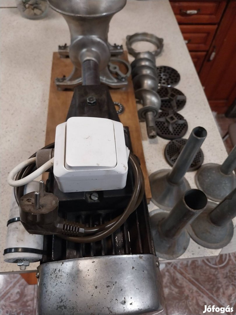 Eladó 32-es Szarvasi húsdaraló!1,1Kw motorral /100fordulat/perc/ erős motor!Keveset használt!Nyomcsapágyas!4db.töltőcsővel,1db.5-ös,1db 7-es,1db.-8-as,1db.10-es tárcsával!