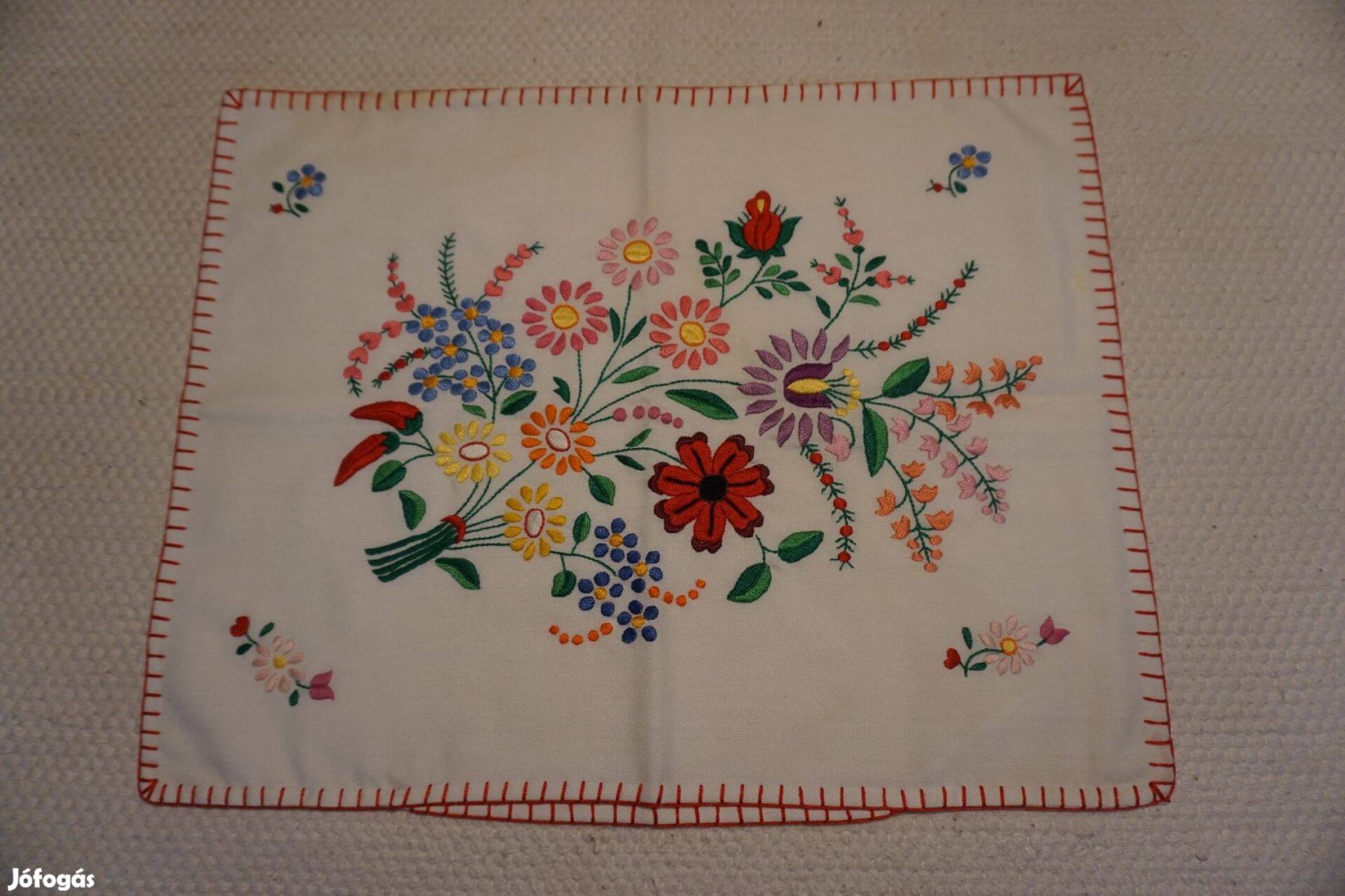 Kézzel hímzett és szegett díszpárnahuzat.