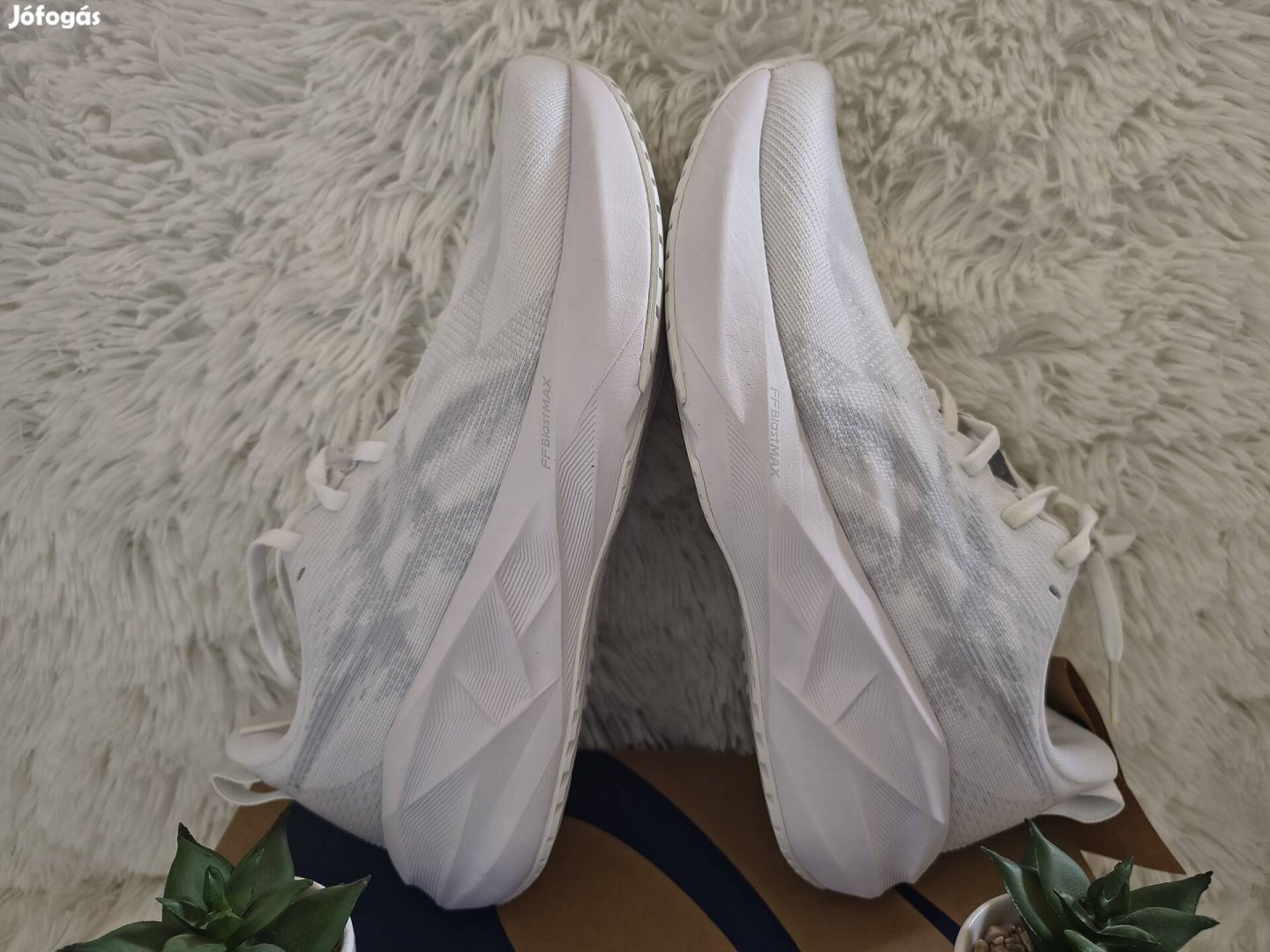 39,5-es Asics Novablast 5 neutrális női futócipő aszfaltra dobozával fehér/ szürke színben.
