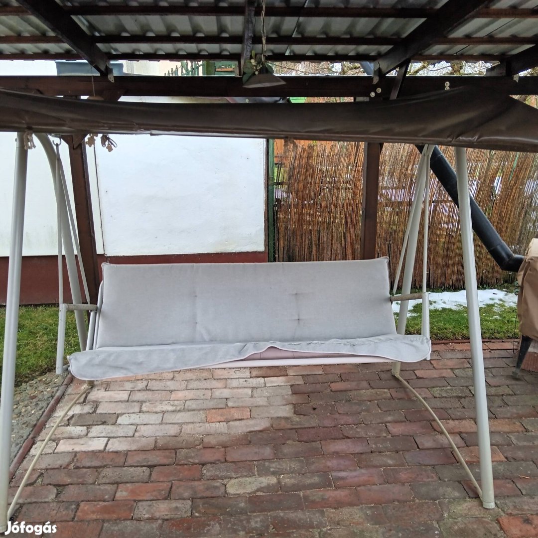 Jysk Sonnerup 3 személyes hintaágy, új, tartós, ponyva tetővel, felújítandó/cserélendő ülőpárnával eladó.