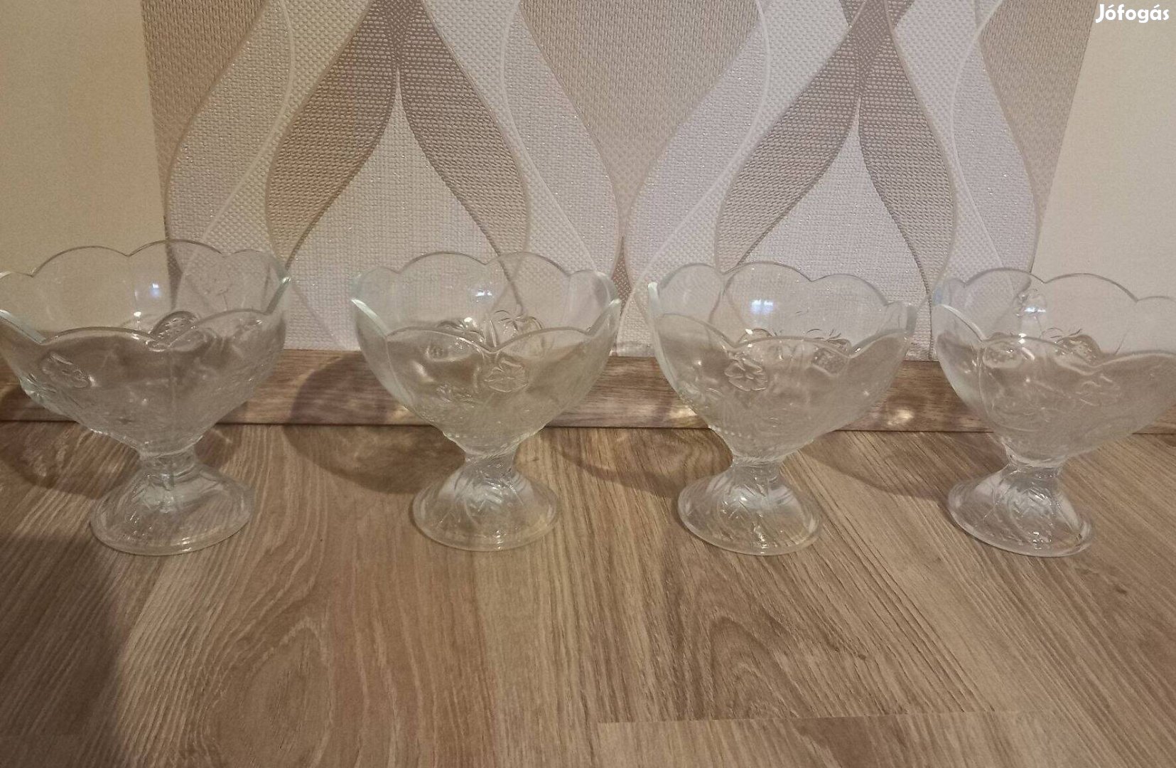 Teljesen új, sosem volt használva. Vastag üvegből készült. Szamócamintás, az egyik oldalán Family frost felirattal. Nagyon szépek. Átmérő: 13 cm. Magasság is 13 cm.
