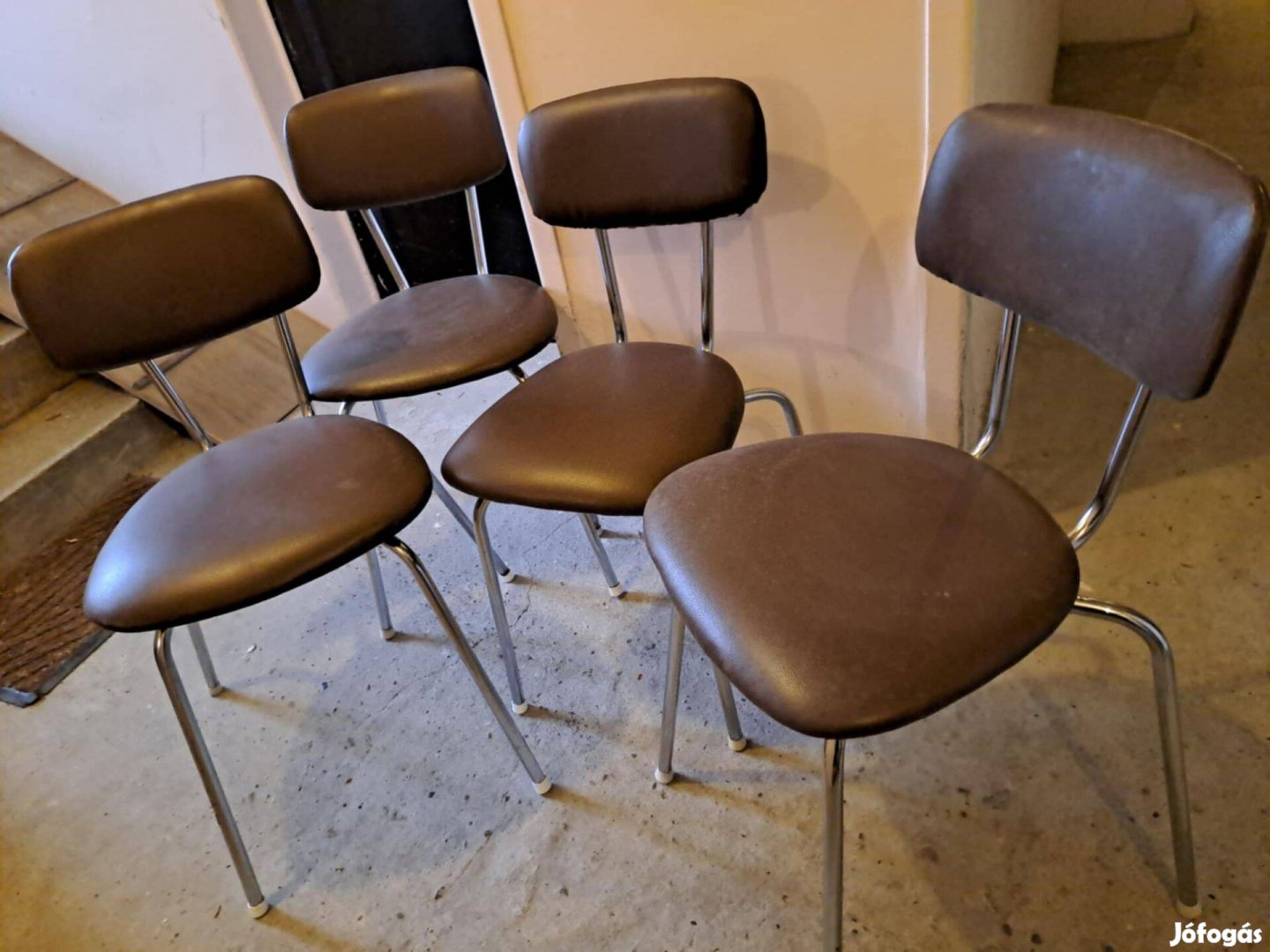 4 db Retro csővázas/fémvázas, műbőr székek. A székek újra lettek kárpitozva pár éve. Az egyik szék támlája már picit sérült fotóztam. Megtekinthető Gyulán egyeztetett időpontban.