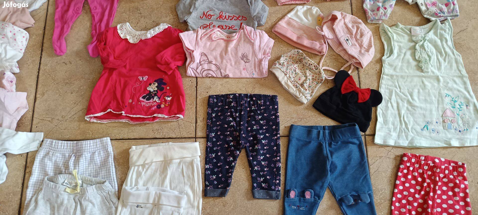 1 cipő, 9 body, 3 rugi, 2 ruha, 4 sapka, 6 felső, 9 nadrág.Egyben 3400 ft.Postázok is