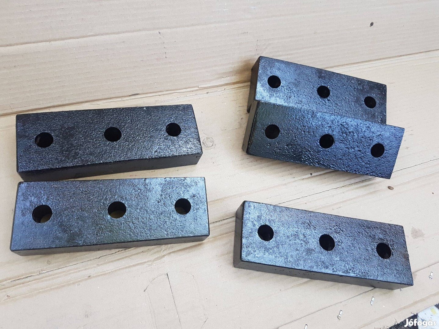 Eladók a képeken látható acél lapsúlyok. 8,5 - 9 kg/db. A súlyok méretei: 25,5 - 26 cm hosszúak, 5 cm vastagok, 9 cm szélesek. A rajta lévő lyukak átmérője 2,3 cm. A lyukak közötti távolság 6,6 ~6,7 cm. Szállítással megrendelhetőek. Kérem hívjon, vagy írjon. Ára: 10000,-/db;