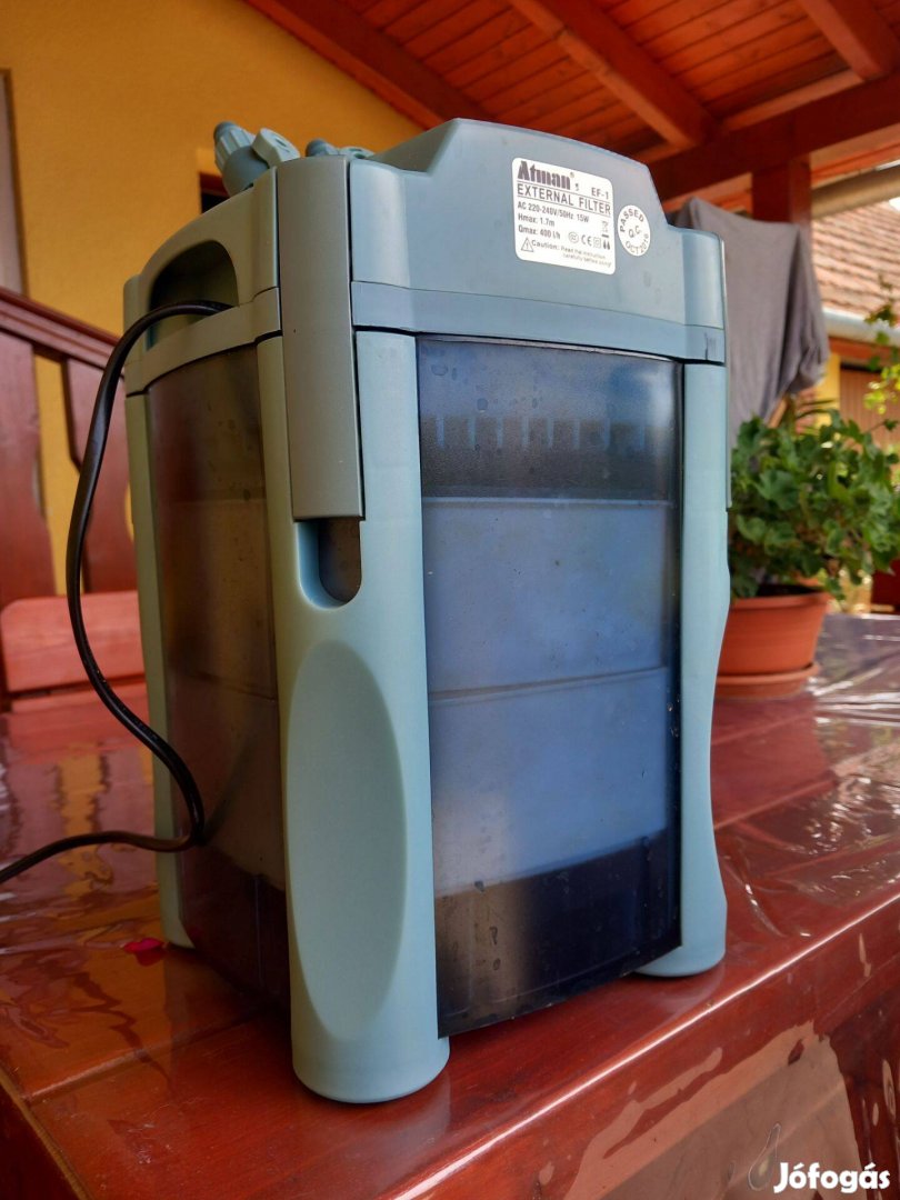Eladó a képen látható alig használt Atman akváriumi külső szűrő, szivaccsal, kerámia gyűrűkkel, csövekkel és tartozékaival .