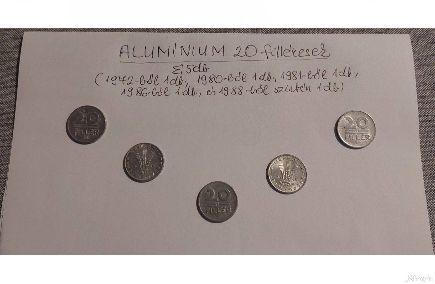 1972-ből 1 db., 1980-ból 1 db., 1981-ből 1 db., 1986-ból 1 db.,és 1988-ból szintén 1 db.Forgalomban voltak, tisztítva vannak. Borítékban postázhatom.
