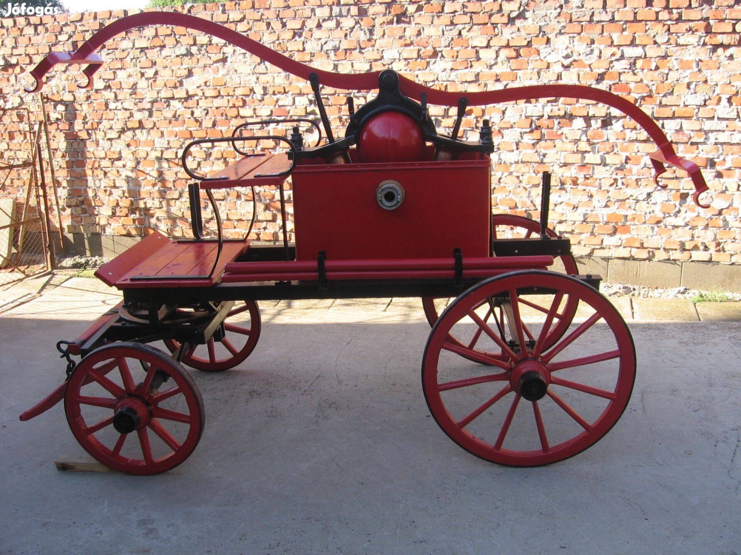 Antik, több mint 100 éves, felsőtartályos tűzoltó szekér eladó. Ára 950e. ft. Kérésre tudok még képeket küldeni. Van még két alsótartályos szekerem is. Az ár csak a felső tartályos tűzoltó szekérre vonatkozik. Veterán motor csere érdekelhet. Személyesen Gyulán tekinthető meg. Érdeklődni a 06 hetven 3823025-ös telefonszámon lehet. Ha szükséges, a szállításban tudok segíteni. Köszönöm hogy elolvasta a hirdetésem.