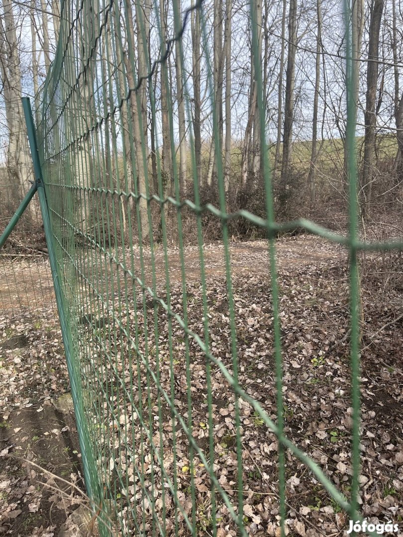 Kiválló állapotú kerítés oszlopok betontuskóval műanyag bevonatú kerítés hálóval, sorok elemekkel (70 m hossz 28 oszlop, 4 sarokelem) eladó!