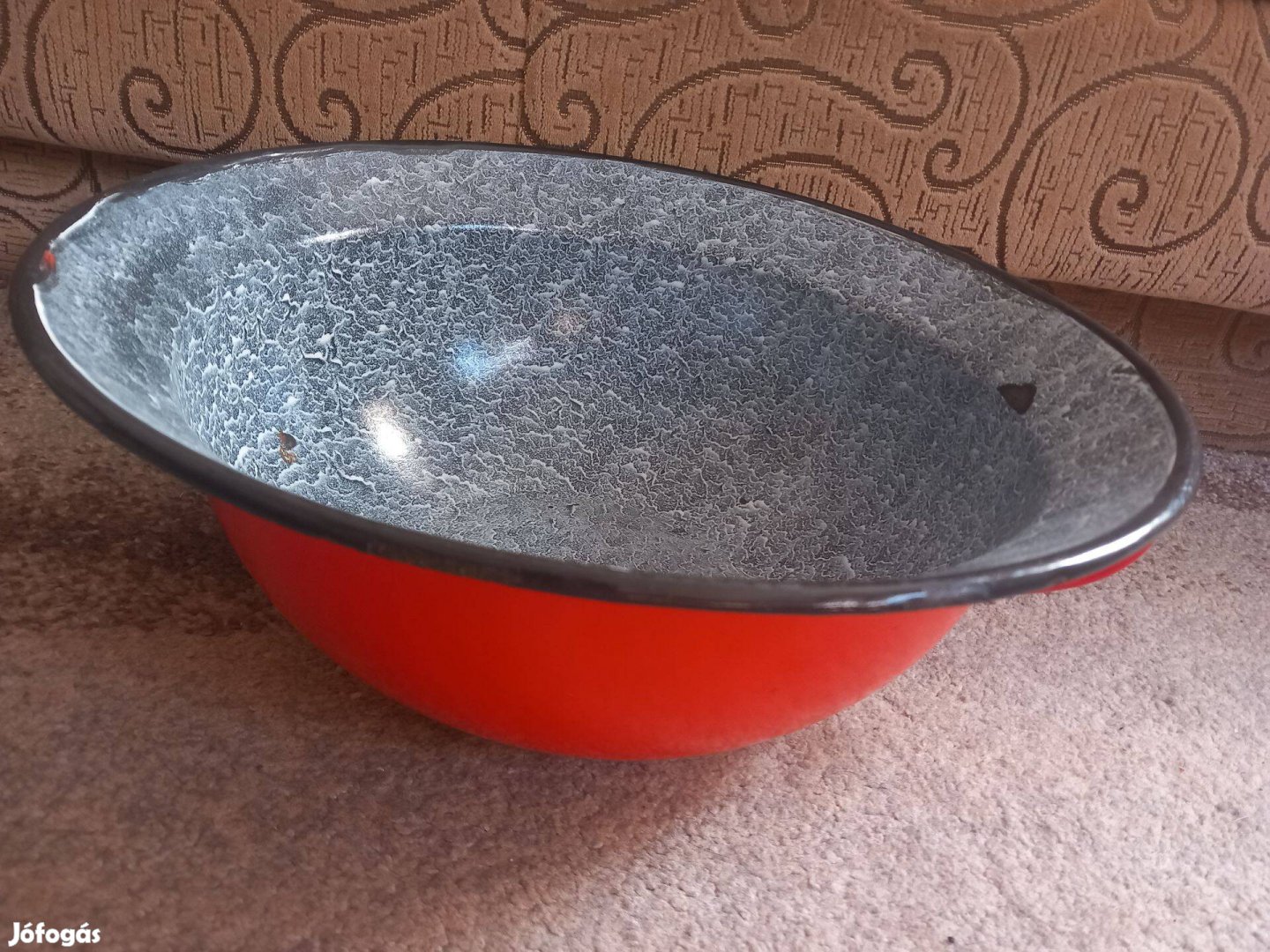 Eladó a képeken látható régi, de elég jó állapotú, cirmos belsejű bonyhádi vájling. Átmérője a tetején 34 cm. Magassága 14 cm. A belsején van 2 kisebb leverődés, de ez a használatát nem befolyásolja, nem lyukas. Jó állapotú. Kívül az alján is van 2 kisebb leverődés.