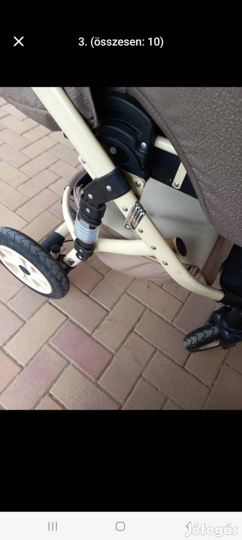 Megkímélt állapotú, három részes,nagy tömlős kerekű,bézs-barna színű,több pontban állítható,rugós csillapítasú babakocsi eladó.