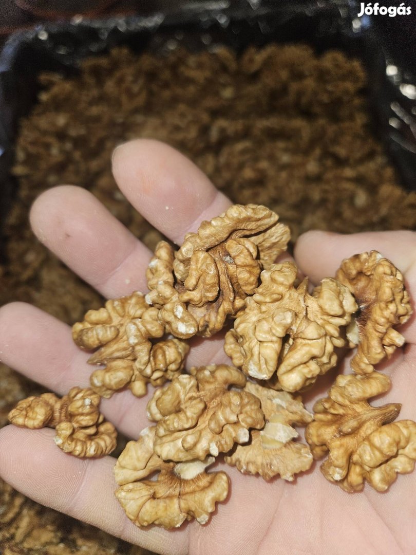 Minőségi étkezési dióbél eladó!Idei,friss törés,csak feles, por és héjmentes!Csomag küldés (posta,gls)megoldható,illetve személyesen is!Kiszerelés:0,5kg-1kg ill.10kg-os M10-es ládás kiszerelésben.Számlaképes vagyok!Kereskedőket is kiszolgálok,nekik ill a 10kg feletti vásárlóknak kedvezményt adok!