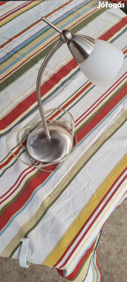 Eladó ez a modern, minimál stílusú, szatén króm felületű asztali lámpa opál üvegbúrával, amelynek talpába épített háromfokozatú érintős fényerőszabályzója van. A lámatest alapjának felületén találhatóak kisebb karcolások, de ettől eltekintve jó állapotú. Átvehető a megadott címen személyes átvétellel. Számla illetve garancia nincs.