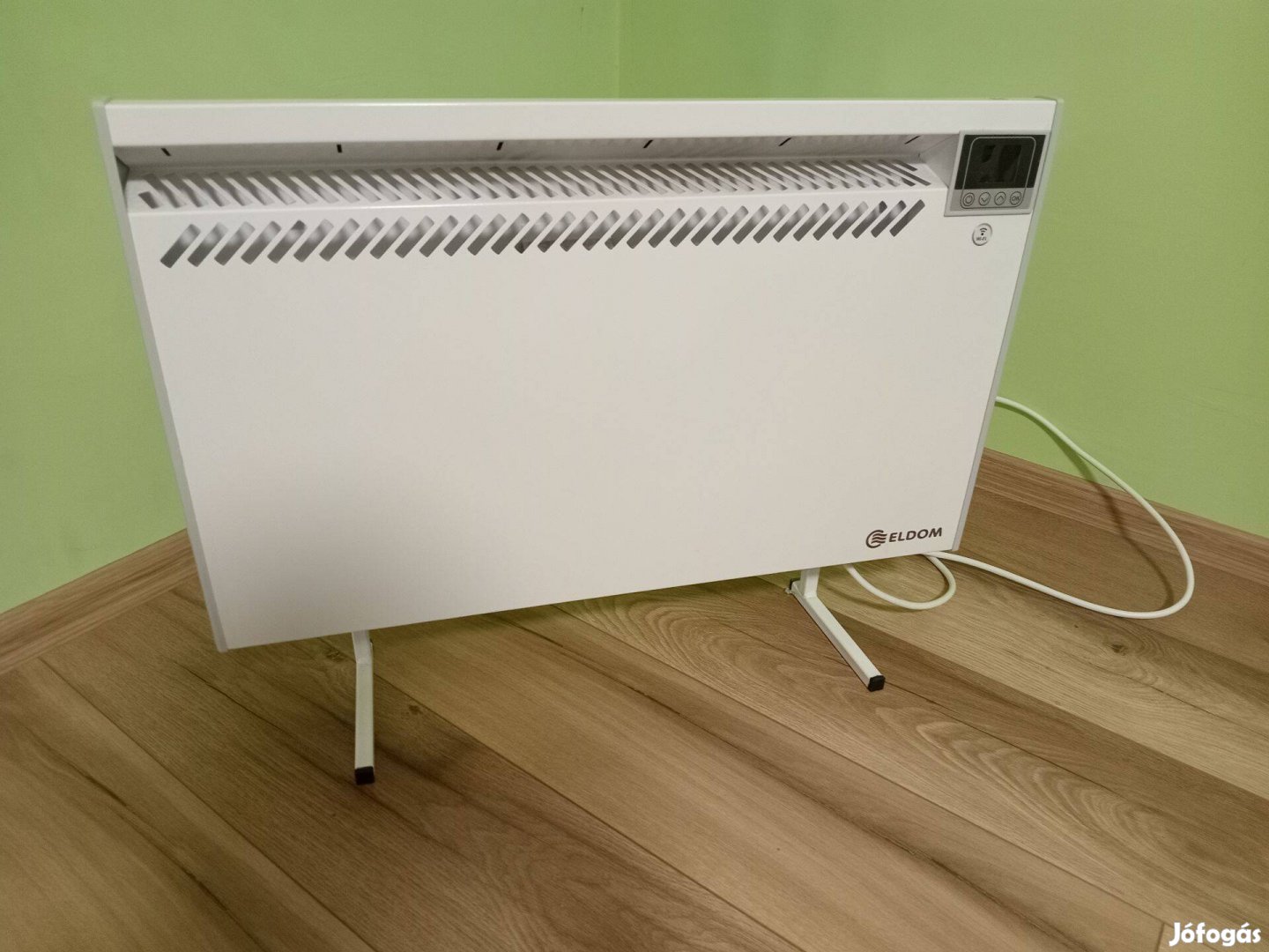 Eldom RH10NW típusú, programozható, elektromos konvektor lábbal eladó. 1000W maximális teljesítményű, 5-11 m2 alapterületű helységek fűtésére alkalmas.