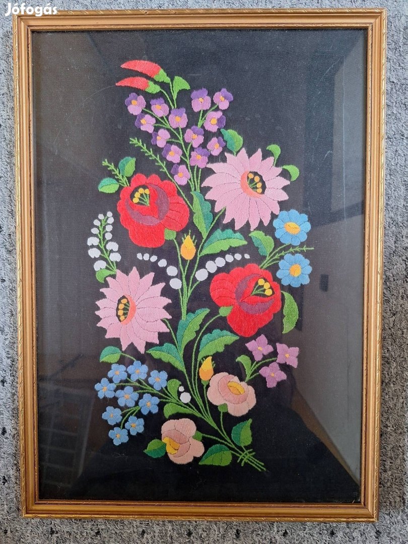 Kalocsai motívumokkal kézzel hímzett faliképek.