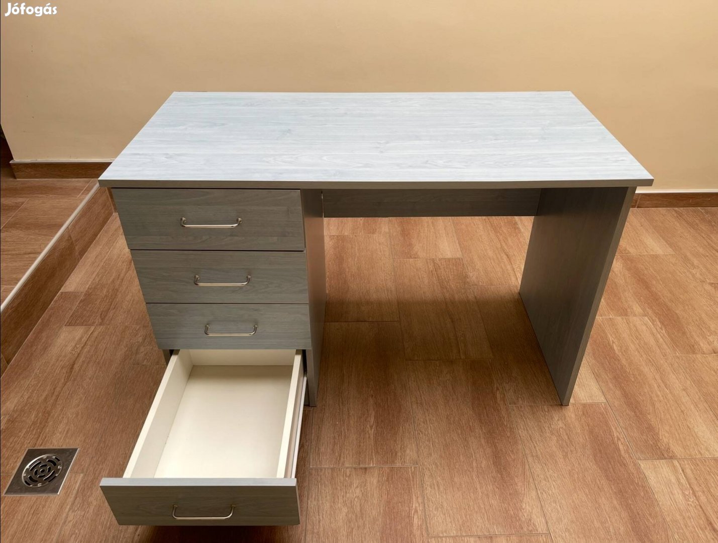 Eladó a képeken látható íróasztal. Méretei: magasság:77cm, Szélesség:122cm, mélység:60cm.