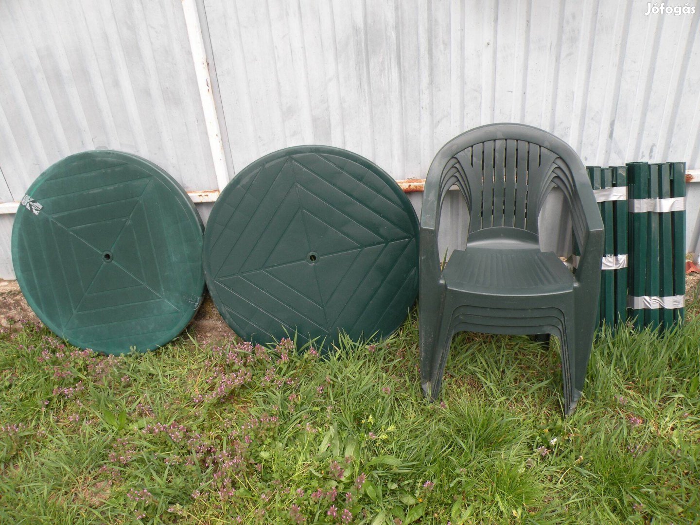Eladó a képeken látható kerti bútor garnitúra! 2 asztal,4 szék! Törve,repedve nincs!