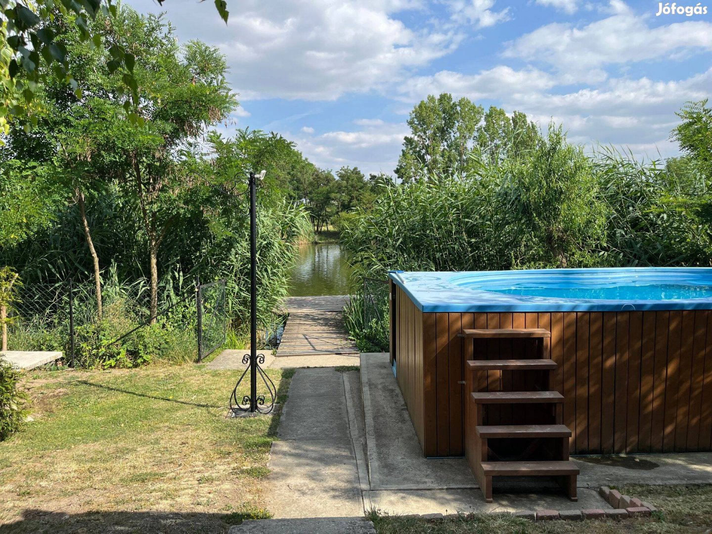 közvetlen vízparti földszintes nyaraló, saját stég, szabadtéri medence (5x3 méteres) ami szezonális jelleggel üzemel (előreláthatóan júniustól szeptember közepéig, végéig amíg az időjárás engedi)