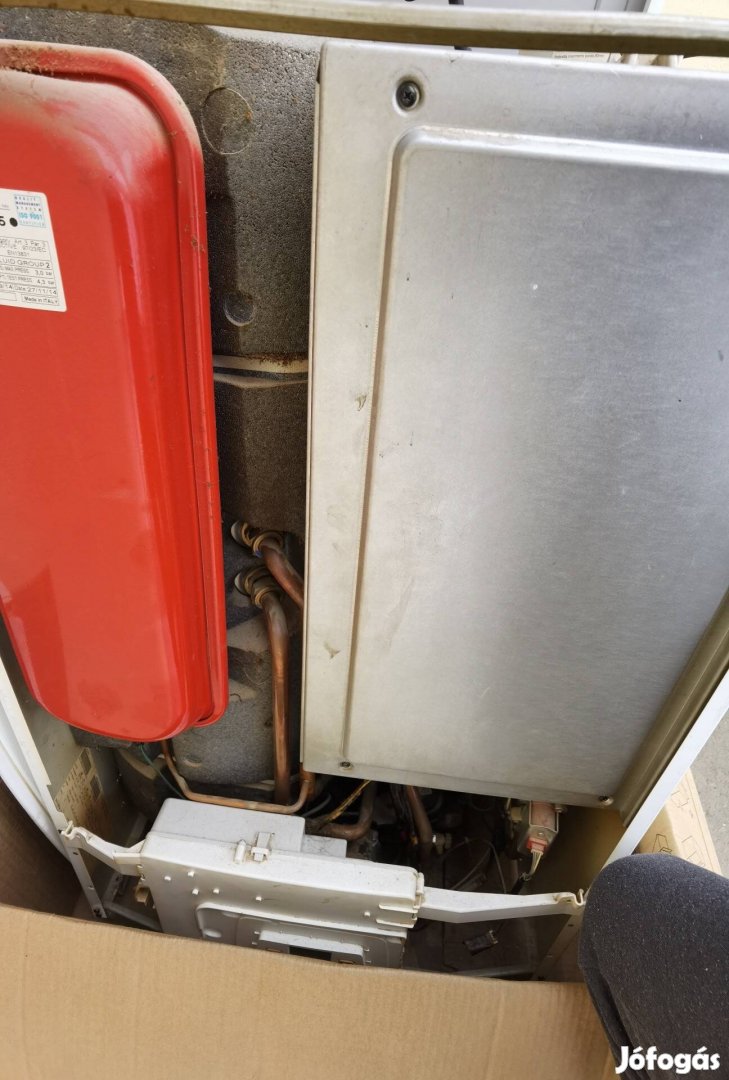 Kazáncsere miatt eladó, elsősorban alkatrésznek.A kazán üzemelt mikor le lett cserélve!A kazánban új panelvan csippel.Ezenkivűl tavaj nyáron szakember kisavazta új tömítést kapott égésbiztosító és szikráztató csere.Ami még cserélve lett: Keringtető szivattyú gyári, Gáz szelep gyári.A kazántesten lévő műanyagburkolat megvan repedve ezért a kondenz víz csöpög,meglehett ragasztani!