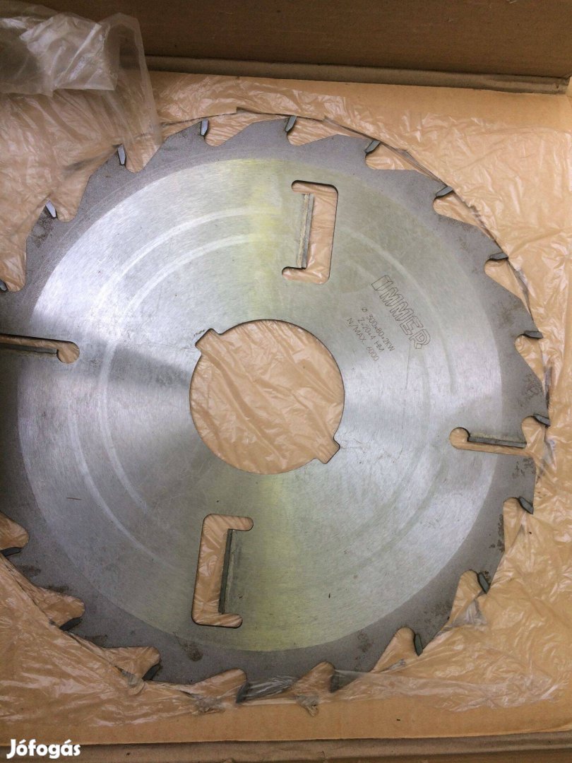 Eladó 3 db Immer körfűrészlap prizmavágóba kidobófogakkal. Átmérője 30 cm, lapvastagság 3,6 mm, középlyuk 80 mm. Eladó egyenként vagy együtt mindhárom, kérem hívjon telefonon. Ára: 15000,- /db