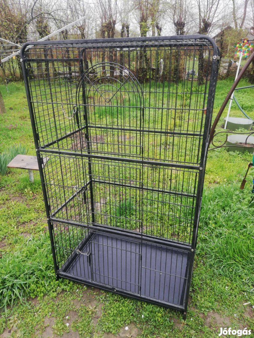 Eladó egy keveset használt kalitka. Mérete: 50x80x140 cm. A rács vastagsága 2,5 mm. rácstávolság 22 mm. Három nagyméretű ajtó, guruló lábak. Lapra szerelve szállítható.