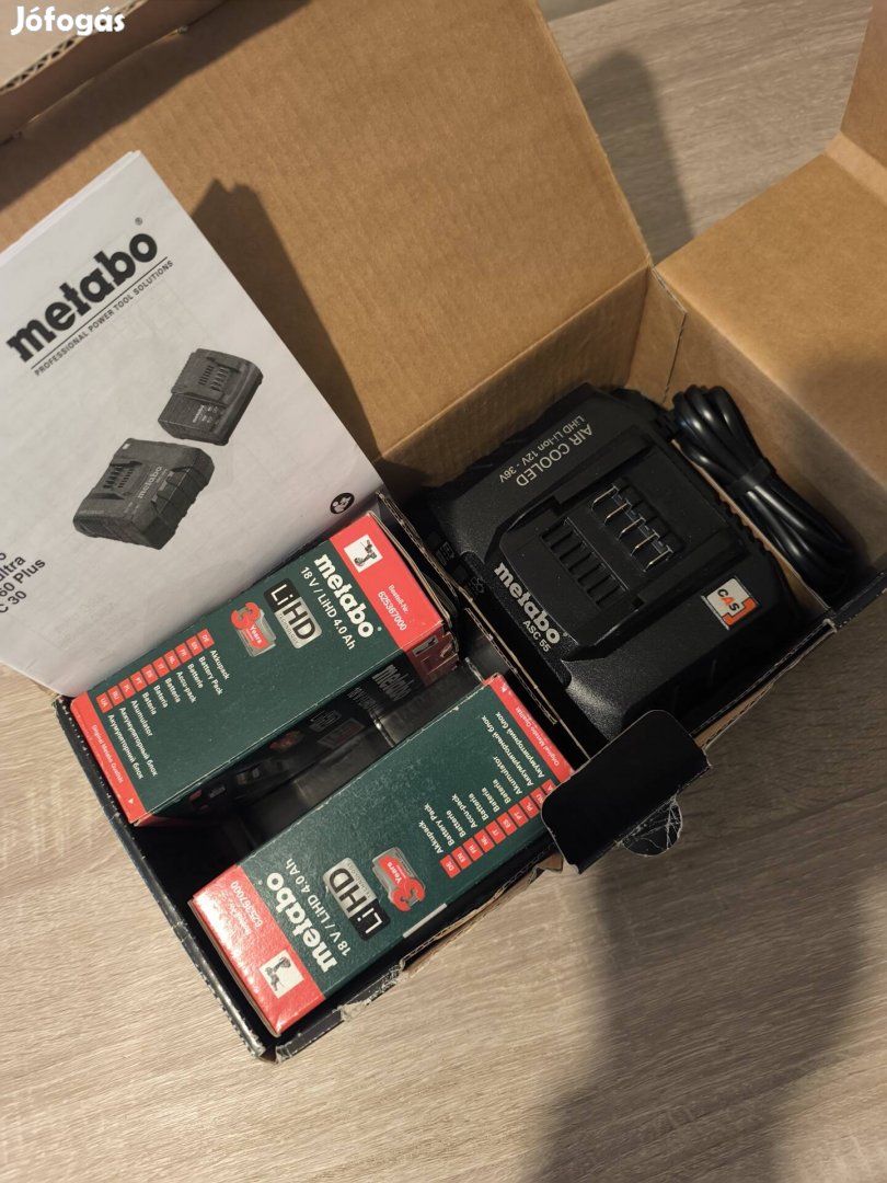 Vadonatúj, Metabo behajtó 2 db 18V / 4Ah aksikal és töltővel, egyben a pakk minimális alku képes!