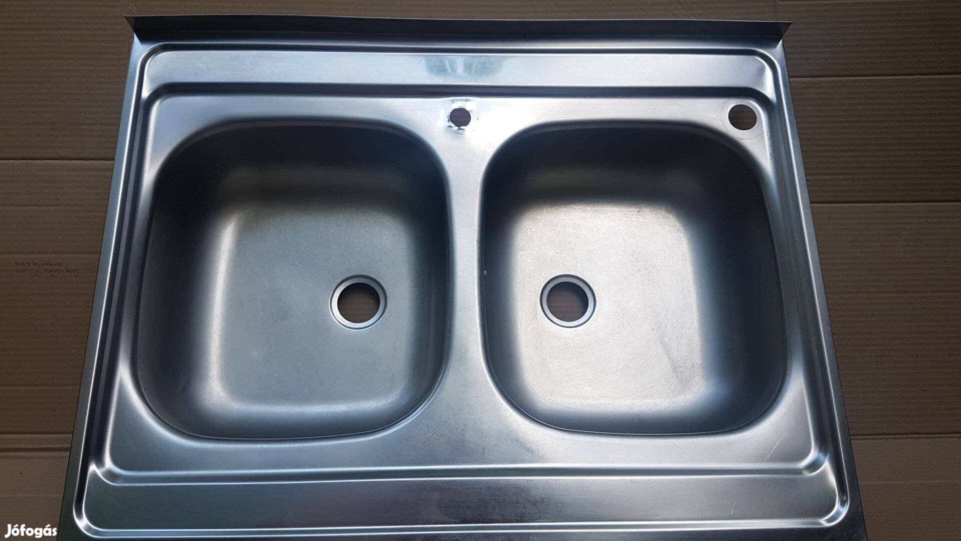 Eladó a képeken látható kétmedencés mosogató tálca, peremes. A tálca használt, de kiváló állapotban van. Méretei: 80 cm x 60 cm. A falnál vízzáró peremmel. Szállítással megrendelhető. Olcsóbb szállítási lehetőséggel kapcsolatban kérem hívjon. Ára: 15500,-;