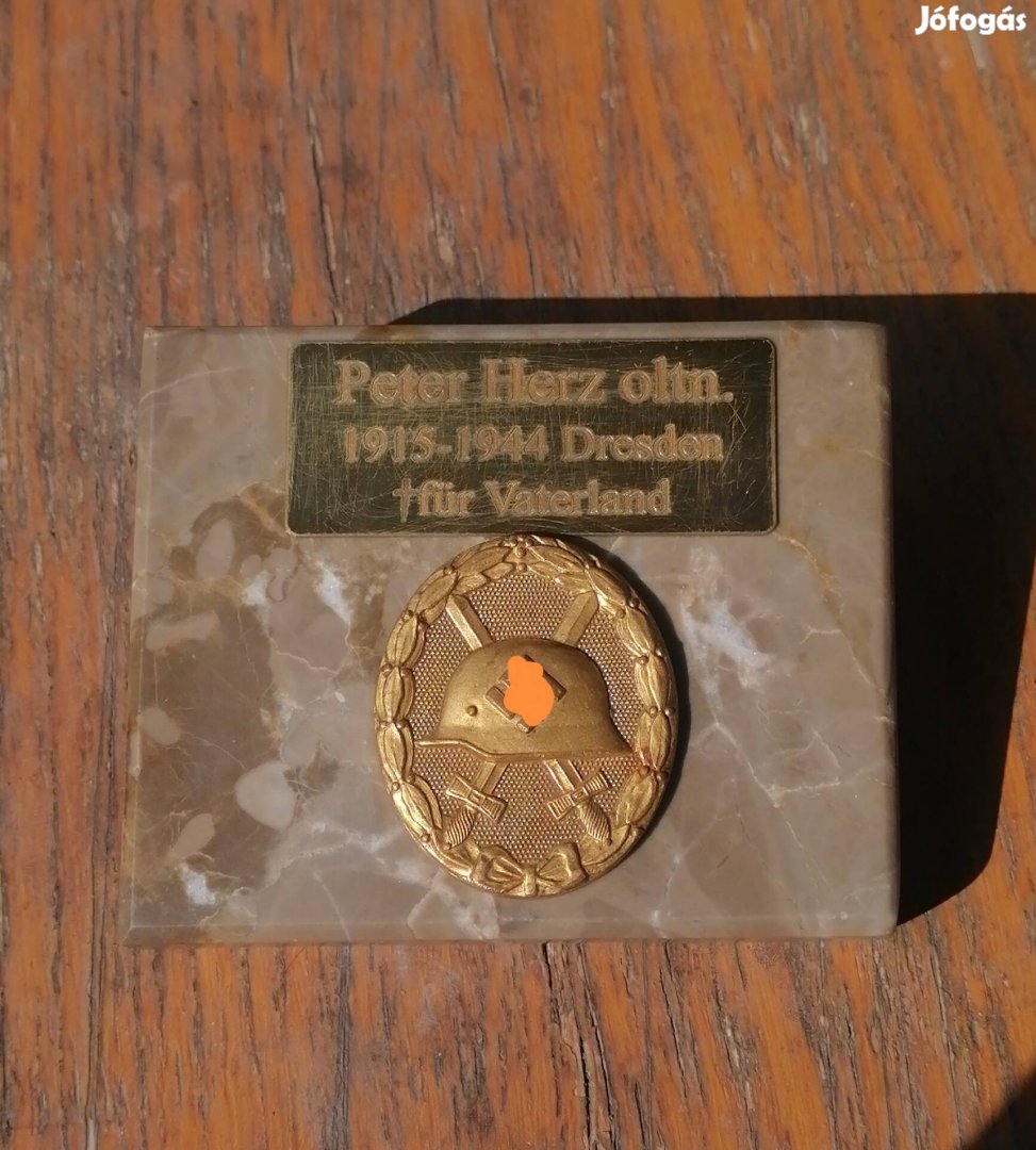 Eladó Náci III.Birodalom arany sebesülési jelvény fellelt állapotban.A feltüntetett ár irányár.